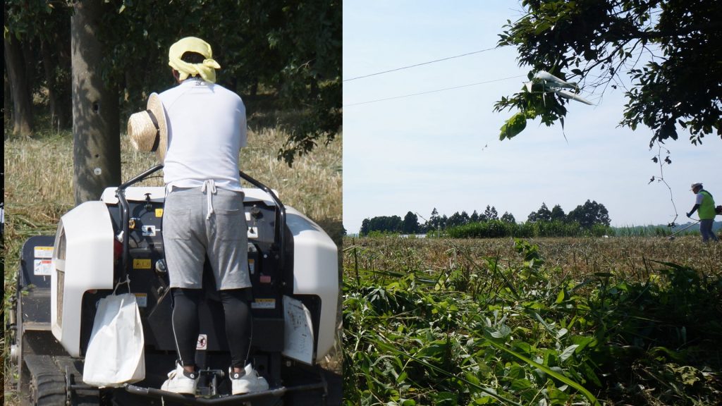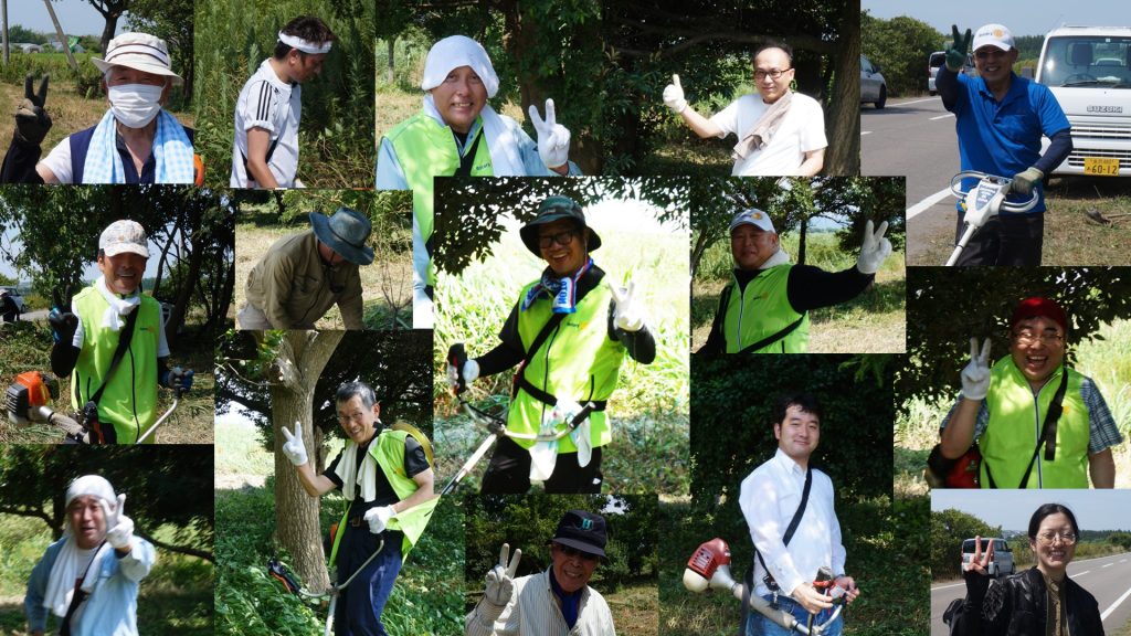 当日は猛烈な酷暑の中行われた草刈り整備。雑草の生命力に負けじと集まった生命力の強い会員は、のべ20名弱。